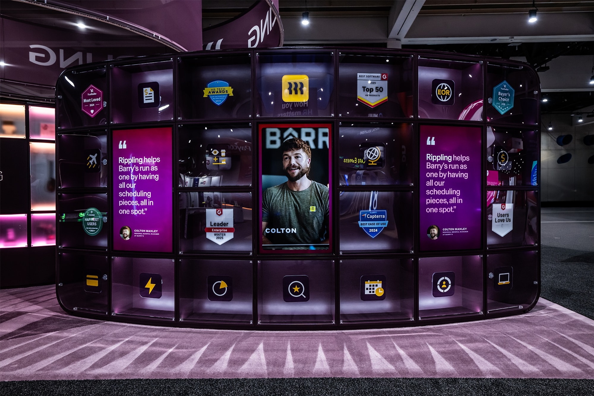 Rippling’s mission is to “free smart people to work on hard problems” through their AI-driven HR technology. They bring this mission to as many professionals as possible at global B2B events where audience, expertise and a scarcity of time and attention are all at play. To engage in active dialogues with key audiences, Rippling’s leadership needed to three-dimensionalize their brand experience in a way that differentiated their product, culture and vision among a sea of sameness.