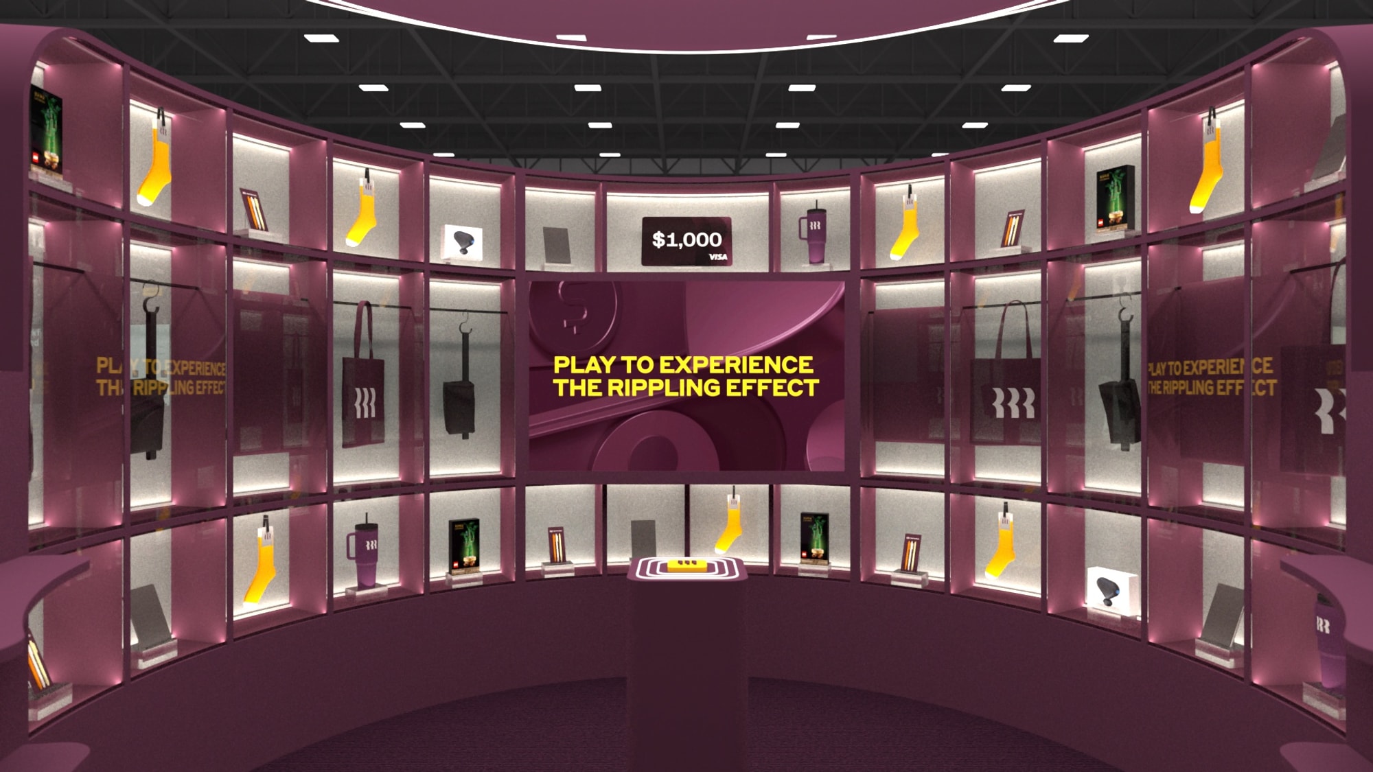 The Rippling effect brand experience is centered around a core, game-driven user-experience, and a set of associated physical and digital design elements that create a cohesive system at any scale. The radial design adjusts to the physical footprint of each event location, and the user experience is optimized to engage specific audience types around their business goals.