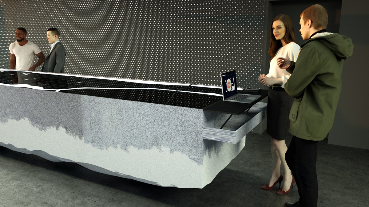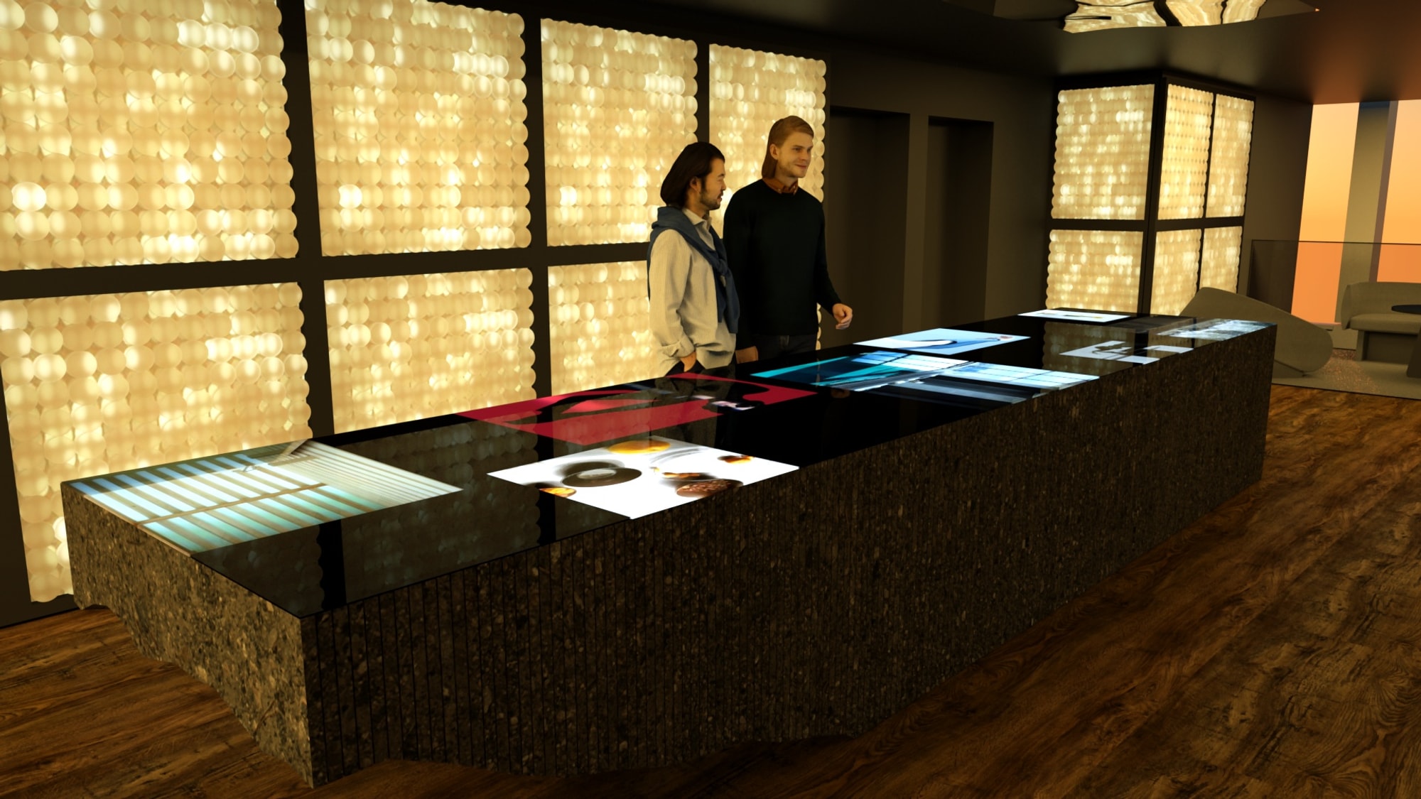 We designed the entire physical-digital experience to deliver a spectacular first impression, and to create an undeniable draw upon entry. The entire space exudes a sense of luxury in its finishes, lighting, and bold sculptural centerpiece - all of which orient guests and concierge staff in the round - a stark contrast to the typical oppositional arrangement of chair and desk. Digital engagement reveals exclusive content via unique partners, and immerses guests in a bold new vision for modern hospitality.